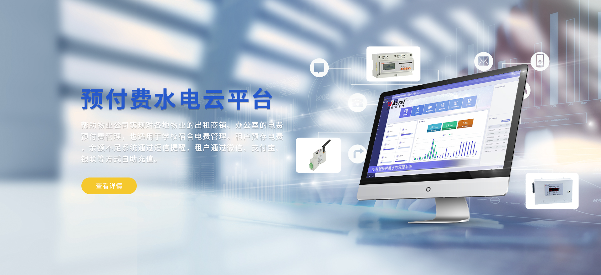 安科瑞提供的解決方案包括Acrel-EIoT能源物聯網云平臺、變電所運維云平臺、安全用電管理云平臺、環保用電監管云平臺、智慧消防云平臺、能源管理云平臺、工業企業能源管控平臺、遠程預付費云平臺、餐飲油煙監管云平臺、電動汽車/電瓶車充電樁收費管理云平臺、電力監控/無線測溫系統、電能質量治理系統、電氣火災監控系統消防設備電源監控系統、防火門監控系統應急照明和疏散指示系統、智能照明控制系統、醫用隔離電源絕緣監測系統等,幫助用戶實現能源智能化、可視化、精細化管理,提高用能效率和用能安全,為企業節能降耗和實現能源數字化建設提供數據服務。
